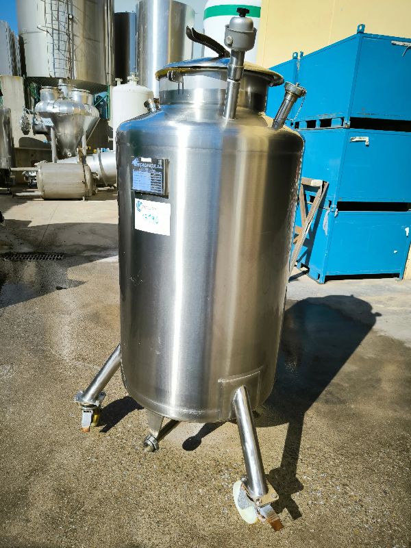 Réservoir en acier inoxydable 316 de 430 litres avec serpentin intérieur fabriqué par Maivisa - Volume - Capacité totale: 430 L - Matériel - Acier inoxydable 316/316L - Caractéristiques techniques - Année de fabrication: 2000 - Pression de service du corps - 3 bar - Température de s