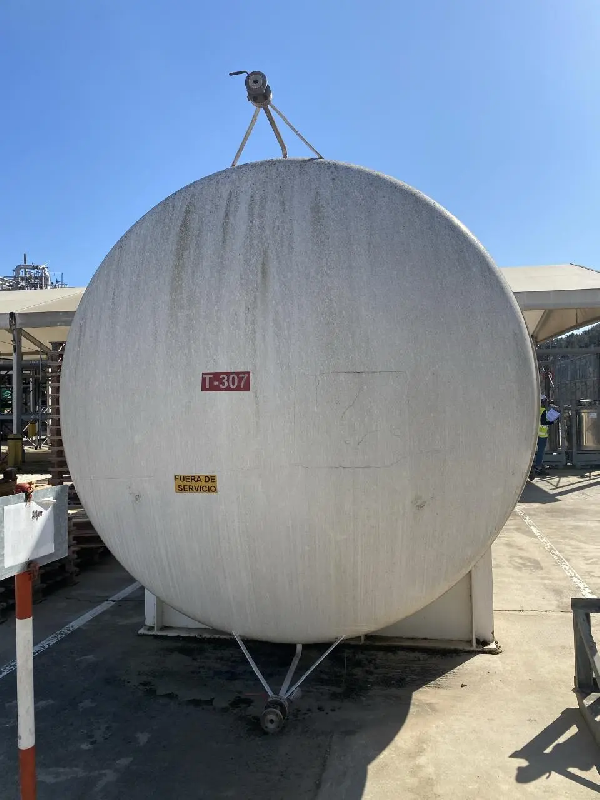 Cuve verticale en acier inoxydable d'une capacité totale de 14 000 litres. Fond conique avec décharge par le bas. Sur 4 pattes. - VolumeCapacité totale14 000 L MatérielAcier inoxydable Caractéristiques techniques Fond inférieurCónico À PROPOS 4 patas Configuration de l'équipementSur pieds