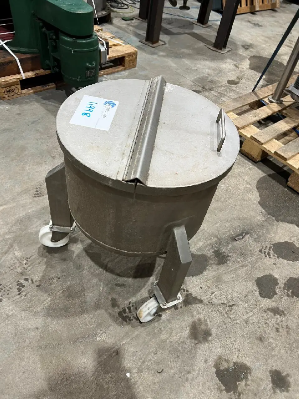 Cuve d'occasion en acier inoxydable avec roulettes. - Volume - Capacité totale : 160 L - Matériel - Acier inoxydable - Dimensions - Diamètre intérieur : 525 mm - Hauteur de la virole : 735 mm - Informations pour le transport - Hauteur : 1200 mm - État - Dans son état - Fabriqué pa