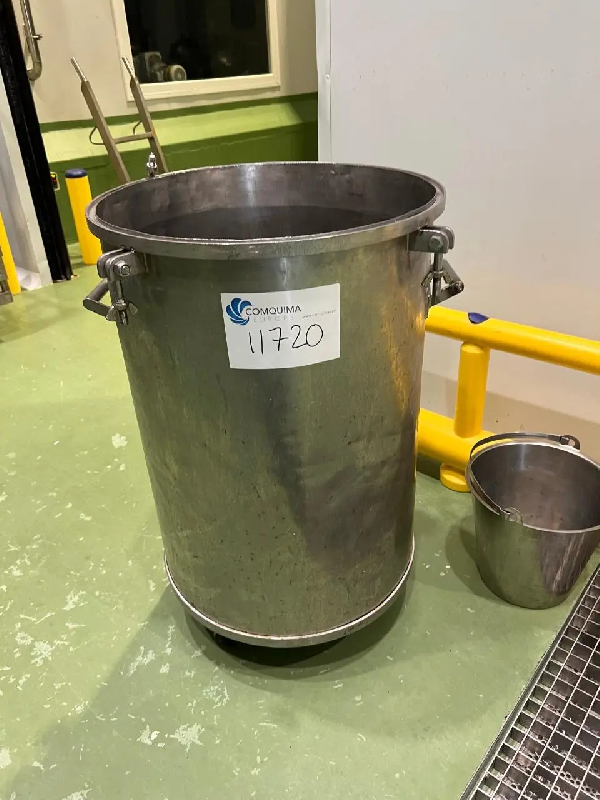 Entrepôt roulant d'occasion. - Volume - Capacité totale : 84 L - Matériel - Acier inoxydable 316/316L - Caractéristiques techniques - À PROPOS - 4 ruedas - Configuration de l'équipement - Sur roues - Dimensions - Diamètre intérieur : 450 mm - Hauteur de la virole : 530 mm - Éta