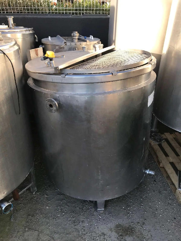 Cuve en acier inoxydable d'une capacité de 1000 litres.Caractéristiques : - Fonds supérieur et inférieur Klopper. - Décharge par le bas. - Avec cartouches. Volume - Capacité totale : 1000 LMatériel - Acier inoxydable 316/316LCaractéristiques techniques - Année de fabrication : 1985Fon