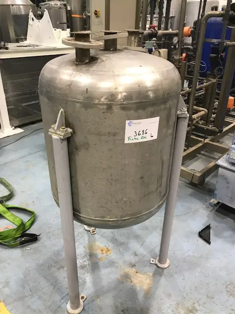 Cuve de 200 litres réalisée en inox par Mabeal en 1969. Sur 3 pieds. Milieux Klopper. Sortez en bas. 3 buses en bas supérieur.