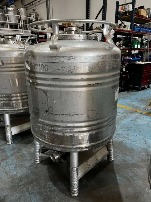 Cuve en acier inoxydable d'une capacité de 730 litres. Fond supérieur : Klopper avec soupape de pression de sécurité réglée à 6 bars. Fond inférieur : Conique avec décharge par le bas. Configuration : Sur 3 pattes. - Volume - Capacité totale : 730 L - Matériel - Acier inoxydable 316/