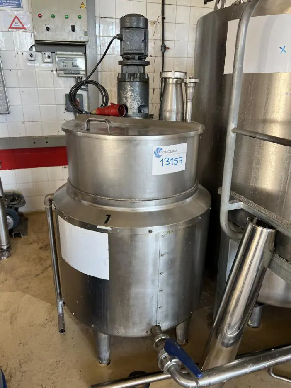 Cuve d'occasion en inox 304 d'une capacité de 365 litres. - Volume - Capacité totale: 365 L - Matériel - Acier inoxydable 304 - Matière chemise/demi - rond - Acier inoxydable 304/304L - Caractéristiques techniques - Moteur de l'agitateur: 0.75 kW - 1375 rpm - Réducteur de l'agitateur