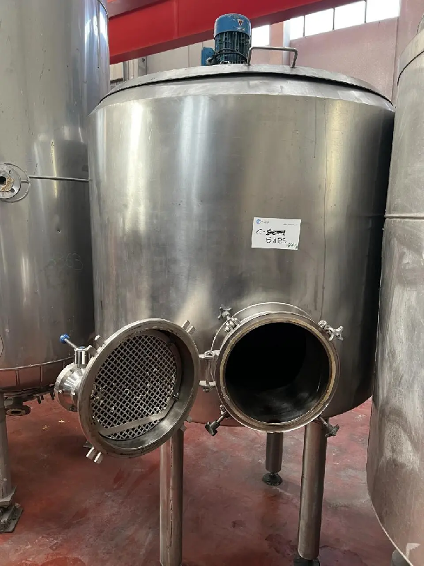 Cuve en inox avec agitation, d'une capacité de 1150 litres. - Volume - Capacité totale : 1150 L - Matériel - Acier inoxydable 316/316L - Caractéristiques techniques - Année de fabrication : 2009 - Pression de service du corps : ATM bar - MOTEUR 1 - 2,2 kW 1410 rpm - Configuration de l
