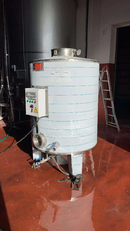 Réservoir en acier inoxydable d'une capacité de 80 litres. Avec demi - cabine sur toute la carrosserie avec refroidisseur et agitation de type ancre, ouverture à couvercle rabattable. Monté sur une structure en acier inoxydable sur roulettes, avec panneau électrique. - VolumeCapacité totale :