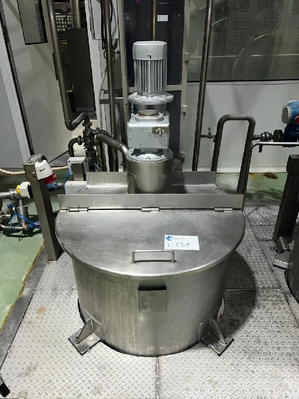 Cuve en inox avec agitation, d'une capacité de 1150 litres.