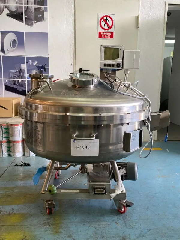 Cuve verticale en acier inoxydable d'un volume de 150 litres avec chemise. Monté sur une structure en acier inoxydable, avec agitation pneumatique à hélice décentrée et désurchauffeur. - Dimensions de transport [mm] : 1 400 longueur x 800 largeur x 1 700 hauteur - Volume - Capacité totale
