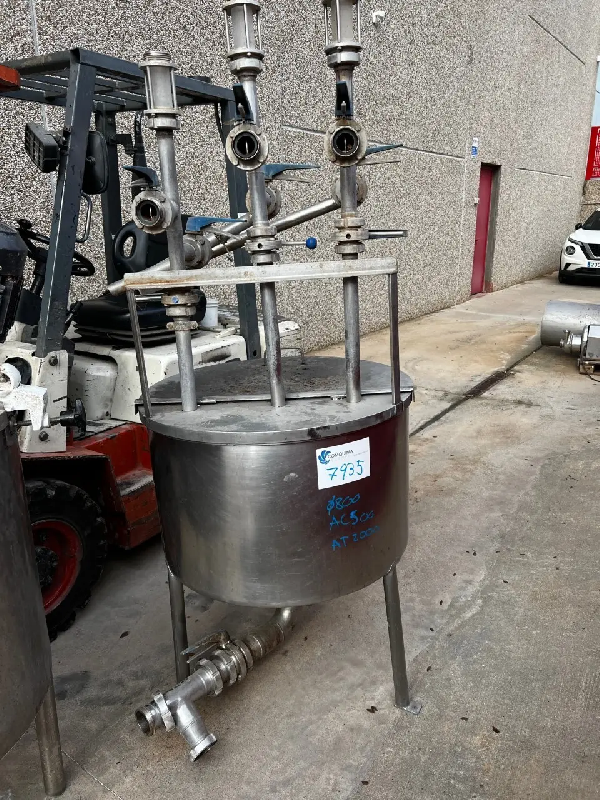 Cuve d'occasion en inox 304 d'une capacité de 365 litres. - Volume - Capacité totale: 365 L - Matériel - Acier inoxydable 304 - Matière chemise/demi - rond - Acier inoxydable 304/304L - Caractéristiques techniques - Moteur de l'agitateur: 0.75 kW - 1375 rpm - Réducteur de l'agitateur