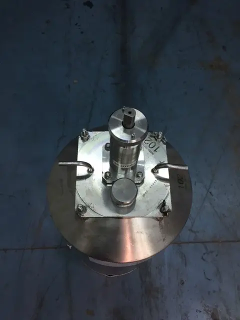 Cuve verticale en acier inoxydable d'une capacité de 100 litres. - Fond supérieur bombé vissé au corps avec 2 voyants, 3 raccords type pince et moteur d'agitation. - Fond inférieur conique avec refoulement par le bas. - Il dispose d'une pompe située sous le fond inférieur pour la recircula