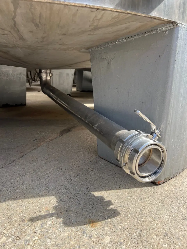 Cuve en acier inoxydable d'une capacité totale de 19 000 litres. Agitation à hélice à différentes hauteurs. Fond inférieur Klopper avec décharge par le bas. Longueur de la virole : 3000 mm Roue d'agitation : 1400 mm