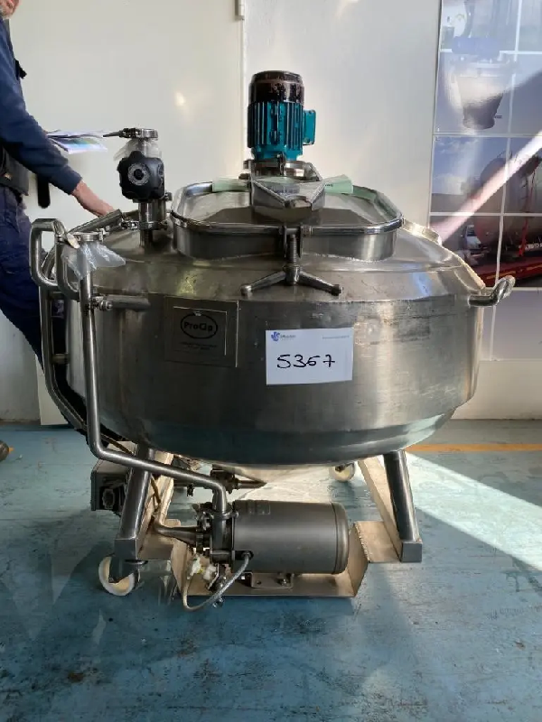 CODE ARTICLE : 2011023 - MARQUE : CUVE - MODELE : 150 LITRES - DESCRIPTION : - Cuve simple enveloppe agitée - Matériau : inox - Capacité : 150 litres - Montage : sur pieds - Serpentin de chauffe vapeur - Agitation : tripale - Puissance : 1,5 kW - 380 volts - Fond : bombé - Vidanges
