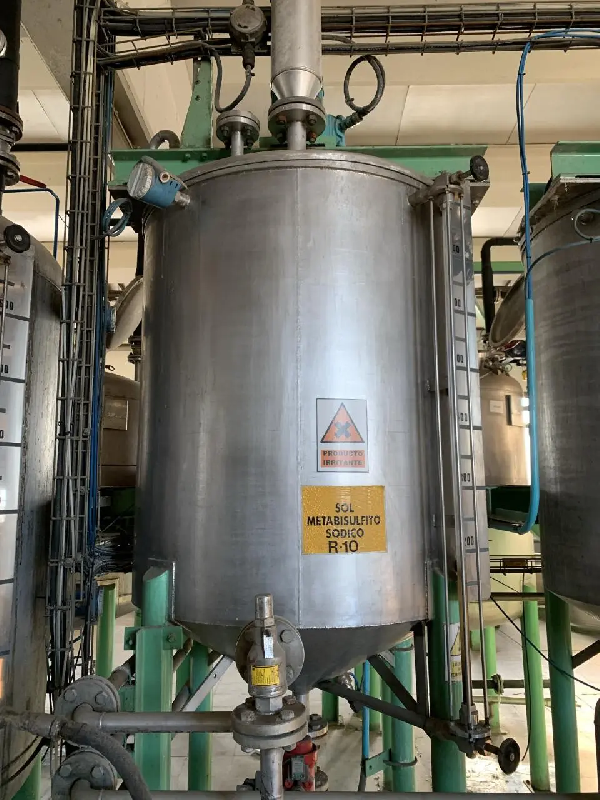 Cuve en acier inoxydable 316 d'une capacité totale de 12 000 litres. Fond supérieur : Klopper avec agitation à hélice à différentes hauteurs. Fond inférieur : Klopper avec décharge par le bas. Support : Sur 4 pattes.
