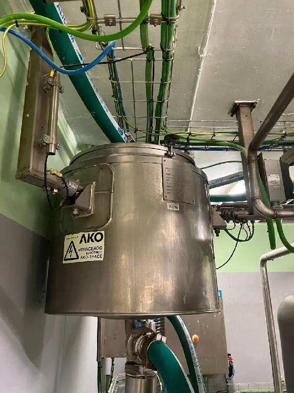 Réservoir fabriqué par MCM, modèle MIKRO TCX 5, d'une capacité de 450 litres.Caractéristiques : - Agitation à différentes hauteurs - Fond supérieur plat avec ouverture manuelle - Panneau de contrôle - Sur roues - Configuration de l'équipement : - Agitateur - Isolation thermique - Ã