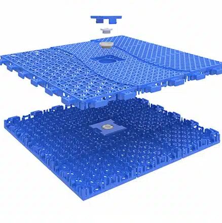 Notre dalle d’entrée de gamme Grid-U9 est notre second produit pour les sports de raquettes. Un peu moins qualitative que la DoubleSpin Pro, 576 piliers de soutien en plastique PET permettent la pratique de sports intensifs et assurent un rebond uniforme des balles.