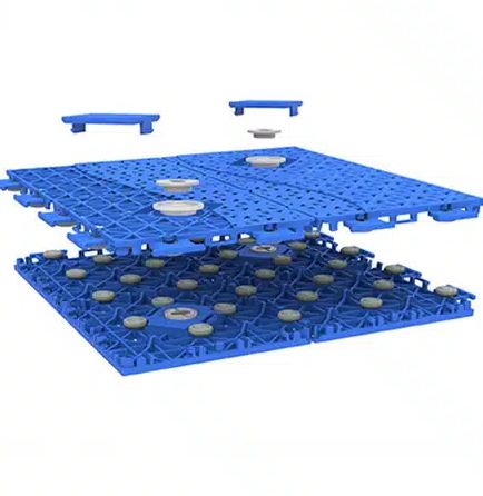 BALLER PRO : DALLE POUR TERRAIN DE SPORT - C’est notre dalle moyen de gamme. Posée sur 32 coussins en plastique PET de soutien, avec 1 point d’arrimage central, elle offre : - Dilatation thermique - Bonne qualité de rebond - Réduction phonique - Traitement anti - UV - Facilité d’entr