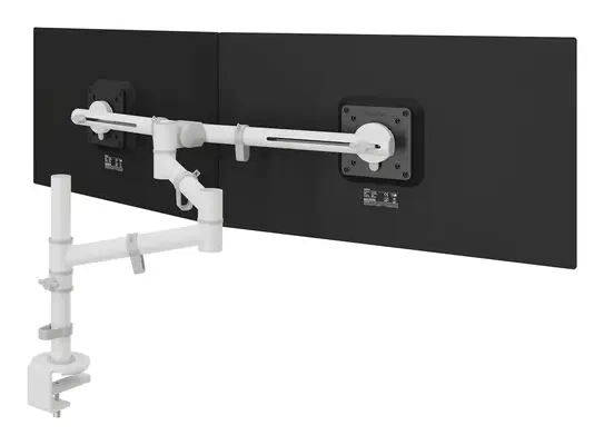 Ce bras ergonomique pour deux écrans est conçu pour améliorer le confort et libérer de l'espace sur votre bureau. Il peut accueillir deux écrans pesant jusqu'à 4 kg et mesurant jusqu'à 27 pouces chacun. Positionnez facilement vos écrans au-dessus de votre bureau à la hauteur, à l'angle et à la profondeur idéaux pour favoriser une posture saine et réduire l'encombrement. Avec sa structure en acier fine mais résistante, ce bras pour écran permet non seulement de gagner de la place, mais aussi d'ajouter une touche moderne à votre installation. Idéal pour une utilisation à la maison ou au bureau.