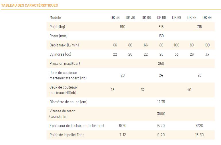 Nos Débroussailleuses pour midi pelles sont conçues pour des pelles de 6 à 25 Tonnes - Moteur en aluminium fonctionne seulement avec le flexible d'entrée et de sortie hydraulique sans drainage - Cette série DK a été étudiée pour pelle de poids opérationnel de de 6 à 25 Tonnes - Le roto