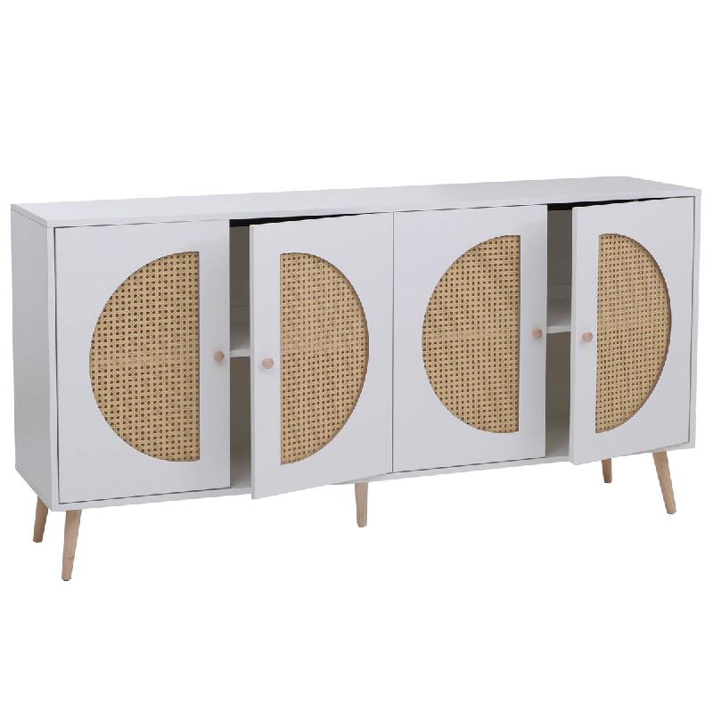 Décoshop26 - Buffet design contemporain 4 portes 4 compartiments 80x160x40 cm en MDF mélaminé blanc et poly-rotin 04_0008840 - 3000267175630