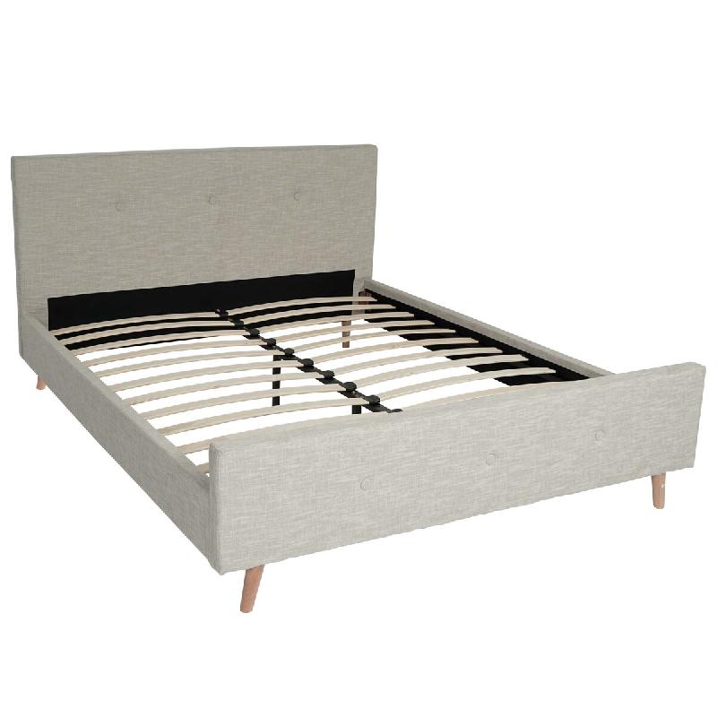 Son revêtement textile crème/beige et sa tête de lit capitonnée avec boutons décoratifs apportent une touche raffinée et chaleureuse à votre intérieur.