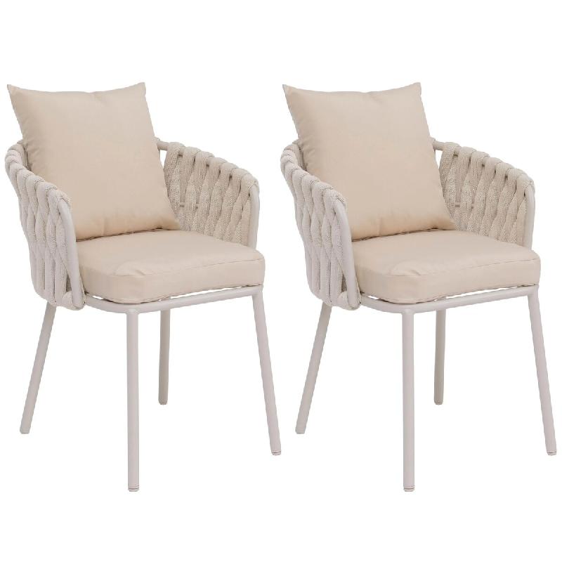 Décoshop26 - Lot de 2 chaises de jardin aluminium et corde tressée structure aluminium thermolaqué crème et coussins 04_0008732 - 3000267109437