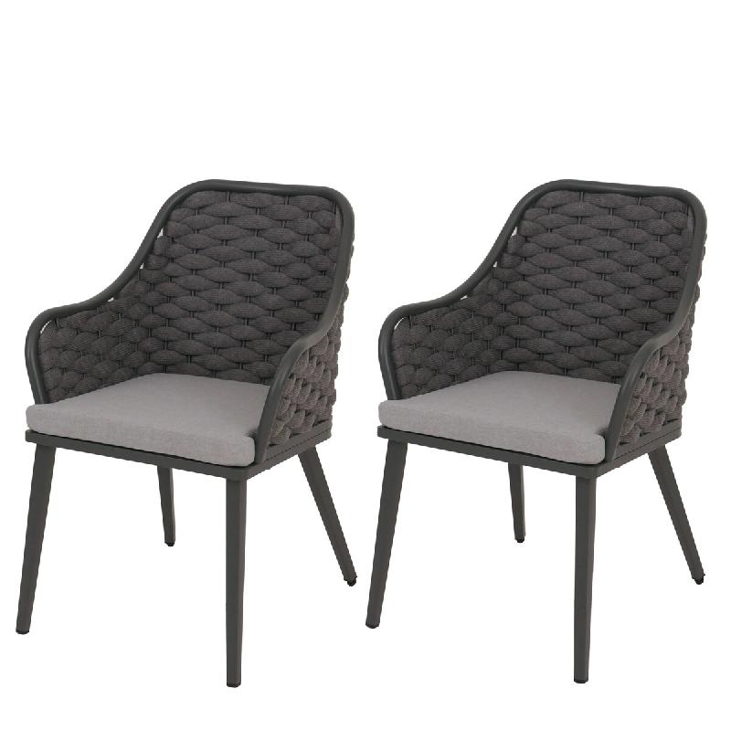 Décoshop26 - Lot de 2 chaises de jardin avec tressage épais et coussins gris clair style moderne en aluminium gris foncé 04_0009594 - 3000267559676