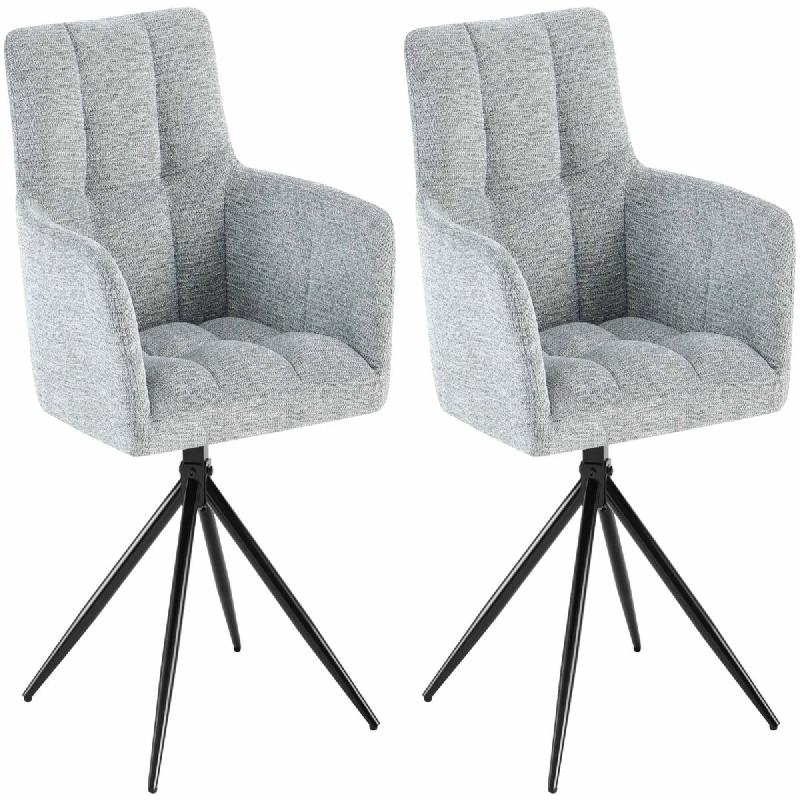 Décoshop26 - Lot de 2 chaises de salle à manger moderne et confort mécanisme de rotation à 180° en tissu gris clair et métal 10_0007536 - 300026