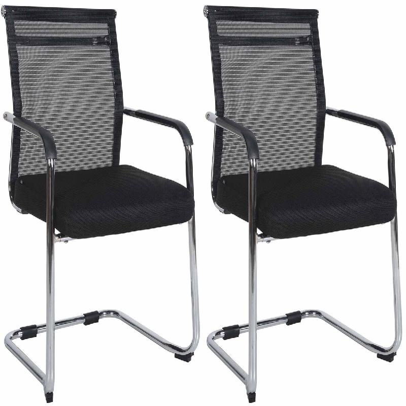 Décoshop26 - Lot de 2 chaises visiteur cantilever mesh respirant et accoudoirs revêtement en maille noir cadre en métal chromé 10_0008385 - 300026