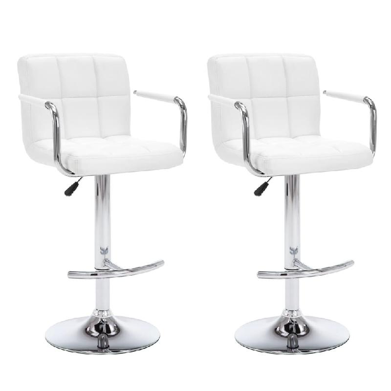 Décoshop26 - Lot de 2 tabourets de bar chaises hautes avec coutures carrées en PVC blanc et acier DEC029615 - blanc 3000257465802
