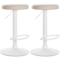 Lot de 2 tabourets de bar avec assise en synthétique crème et cadre métal blanc