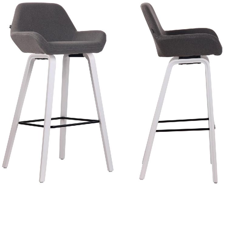 Décoshop26 - Lot de 2 tabourets de bar en tissu gris foncé pieds en bois de chêne blanc design original robuste et confortable 10_0000411 - blanc 3