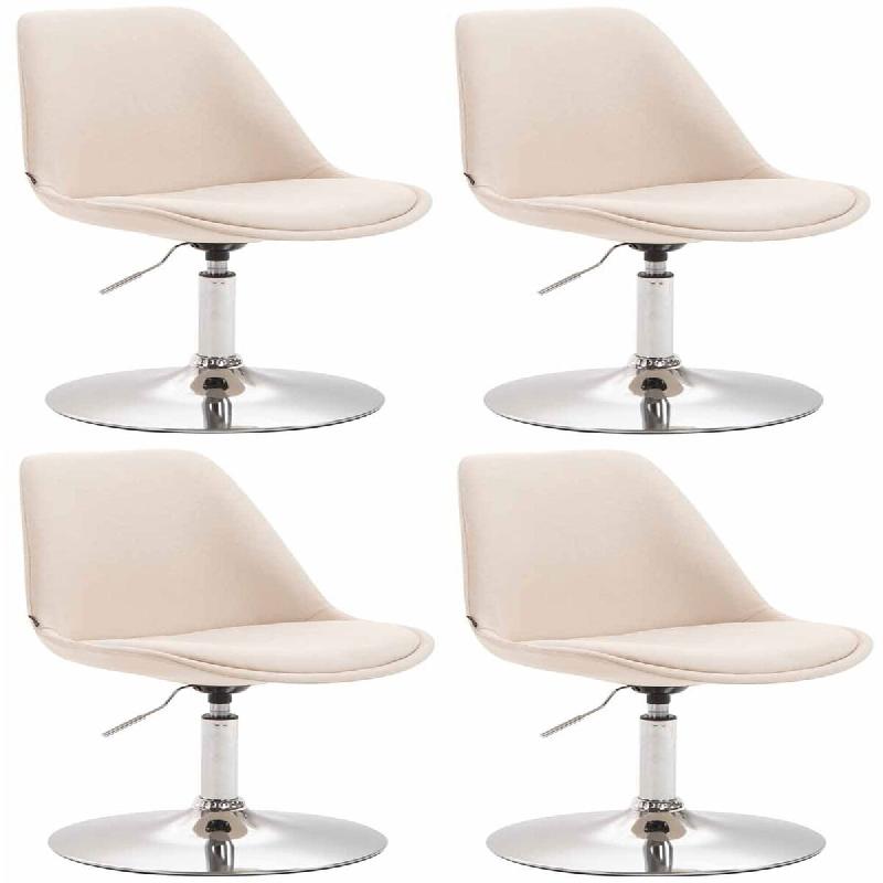 Décoshop26 - Lot de 4 chaises de salle à manger pivotante hauteur réglable en tissu crème et pied trompette en métal chromé 10_0008532 - 3000266705715