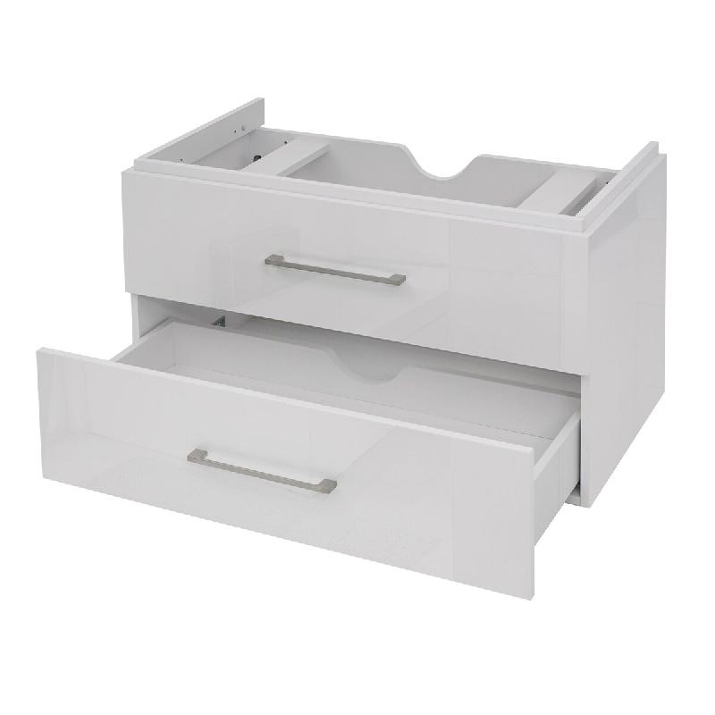Décoshop26 - Meuble sous-vasque 90 cm suspendu 2 tiroirs Soft-Close encoche siphon style moderne contreplaqué blanc brillant 04_0010531 - 3000268101