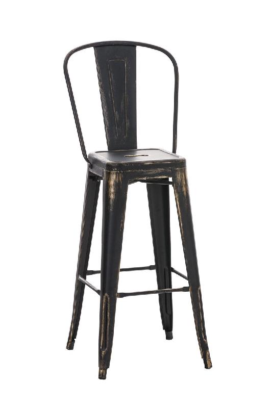 Décoshop26 - Tabouret de bar avec dossier haut style industriel en métal noir doré 10_0001192 - noir 3000694769600