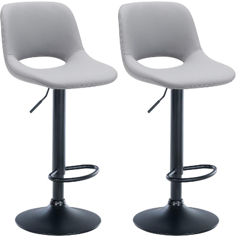 Décoshop26 - Tabourets de bar chaises haute x2 avec repose-pieds en PVC gris piètement métallique noir 10_0004065 - 3000251914047