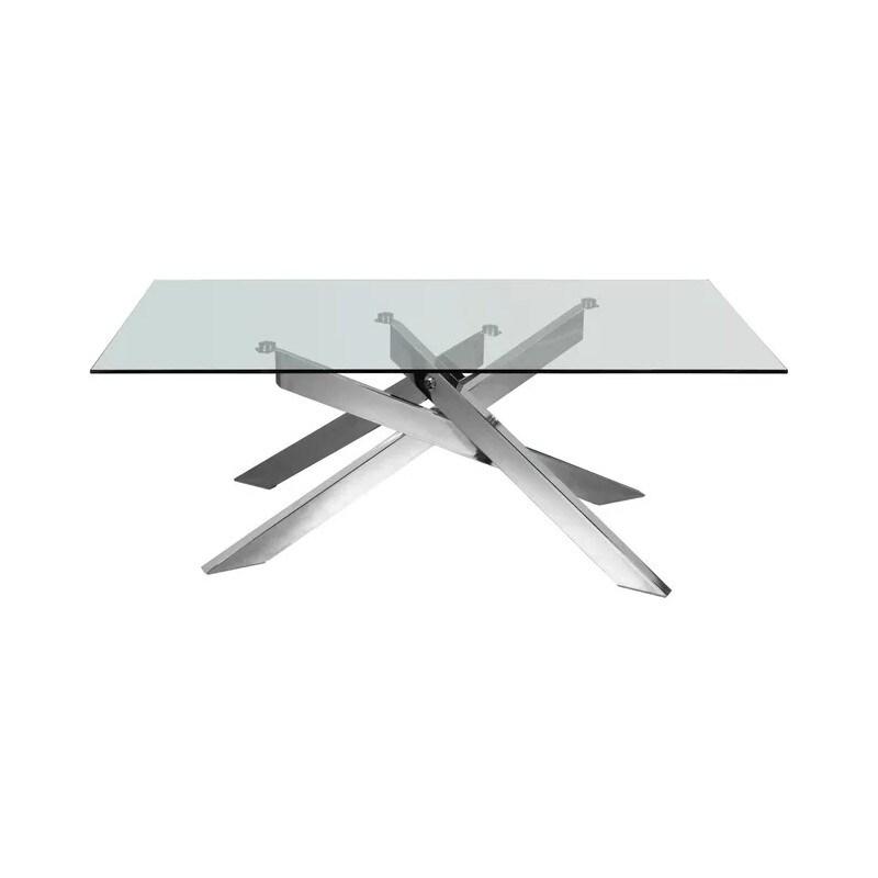La table basse en verre moderne Pivoine sera parfaite dans n'importe quel salon avec sa structure en acier chromé et son magnifique plateau en verre sécurit.