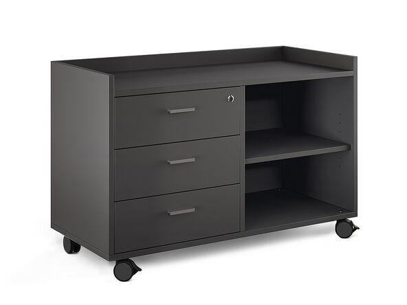 Desserte sur roulettes. Fabrication française. L 100 x P 45 x H 66,5 cm. Modèle gauche ou droite. Finition bois mélaminé blanc, noir ou sable.