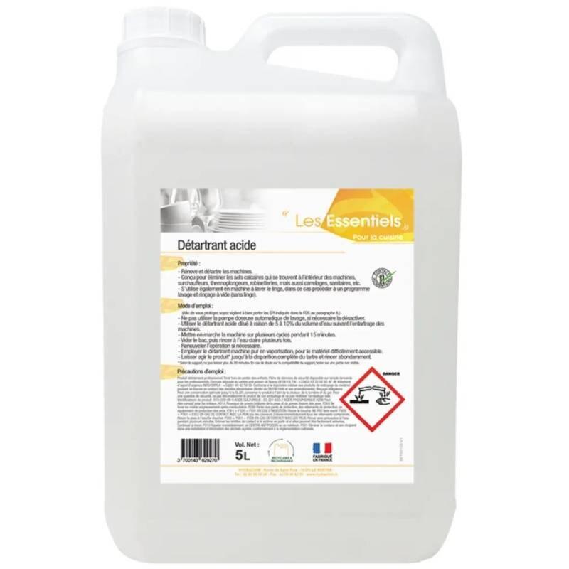 Détartrant machine professionnel pour une durée prolongée de vos équipements !Le Détartrant acide permet de rénover, détartrer, protéger vos machines et prolonger leur durée de vie. Ce produit élimine parfaitement les sels calcaires qui se trouvent à l'intérieur des machines, surchauffeurs, thermoplongeurs, robinetteries, carrelages, sanitaires...Grâce à sa formule puissante et sans effort, ce détartrant machine est spécialement conçu pour dissoudre rapidement les dépôts de tartre tenaces qui s'accumulent dans votre machine. Il élimine efficacement le tartre et prolonge la durée de vie de votre appareil. En plus de nettoyer efficacement votre machine, il laisse également une agréable sensation de fraîcheur. > Bon à savoir : diluer à raison de 5 à 10% du volume d'eau suivant l'entartrage de la machine.