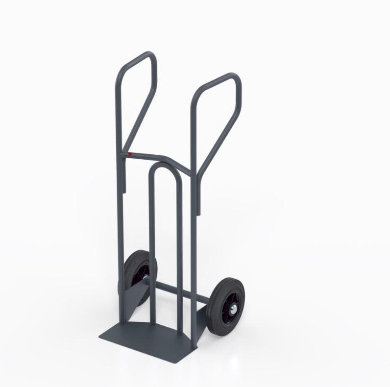 Diable à bavette rabattable avec dossier légèrement incurvé - Chassis renforcé, tube diamiètre 25 mm - Charge maxi : 250 kg. - Idéal pour les charges grands volumes et lourdes - Chargement en position horizontale - Coloris gris anthracite RAL 7016 - Diable équipé avec : - > Bavette r