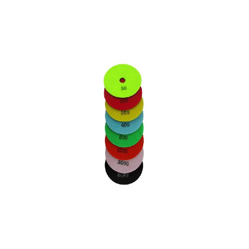 DIAMWOOD EXPERT EN EQUIPEMENT Lot de 8 pads de polissage diamantés à sec auto-agrippant D.100 mm - Granit, marbre, pierre naturelle - Diamwood - gri