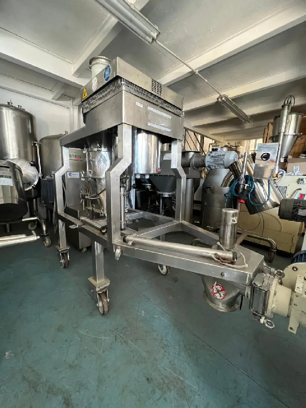 Référence - : - E13325 - Broyeur à couronne RIMSA - 3 en acier inoxydable Monté sur une structure en acier inoxydable équipé de : Trémie de chargement avec vis sans fin pour le dosage Filtre à manches pour collecter les poussières Trémie de déchargement avec vanne papillon Moteur de 10