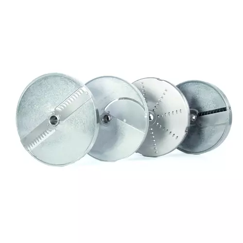 Disques et grilles conçus pour couper toutes sortes de légumes et hacher du fromage, du pain, du chocolat, etc.