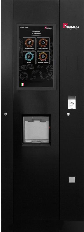 expresso et soluble. La ligne essentielle, enrichie par l'écran 21", donne à la machine un design unique adapté à tout environnement (entreprise,lieux publics, restaurants, etc.)