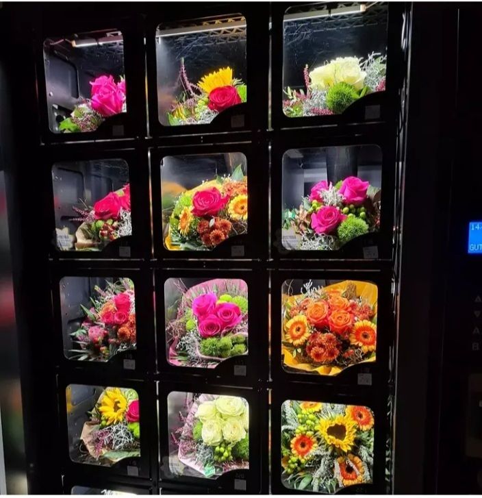 Distributeur Automatique Kiosque à Fleurs - Explorez une toute nouvelle approche de la distribution florale avec nos distributeurs automatiques à casiers réfrigérés, spécialement conçus pour les fleuristes. Ces distributeurs réfrigérés révolutionnent la manière dont vous présentez et v