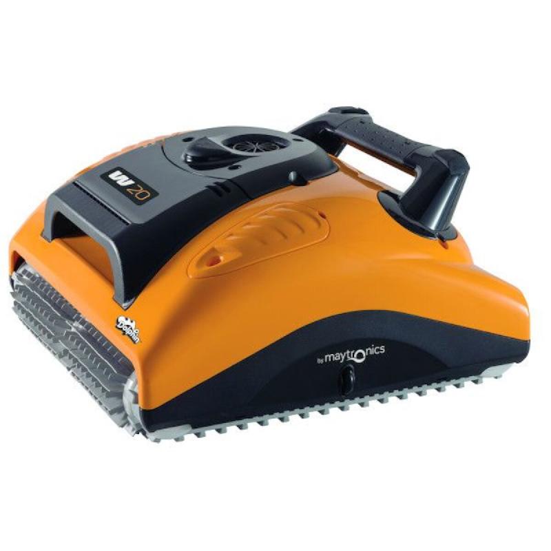 Seul robot nettoyeur de piscine capable d'opérer dans un bassin d'une profondeur de 20 cm seulement, le dolphin W20 assure un nettoyage automatique complet et rapide des bassins peu profonds.