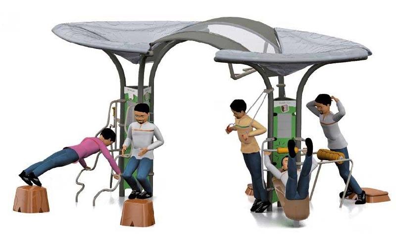ATTENTION : Disponible en AURA. Autres régions, nous consulter Ilot sportifInstallation extérieure (non comprise) Norme : NF EN 16630 De configuration compacte et avec une structure abritée, cet équipement design permet à tous les sportifs - de débutants à experts - de s'entrainer en toute