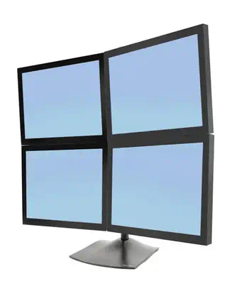 Economisez votre espace de travail en quatre écrans plats sur un seul socle. Ajustez sans difficulté la hauteur et la position de tous les écrans pour un confort ergonomique.