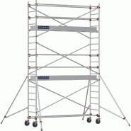 Adapté aux travaux intérieurs exigeants, l'échafaudage roulant aluminium AL 255 offre une hauteur de travail de 4,90 m, extensible jusqu'à 9,90 m selon les modules utilisés. Avec une longueur de plancher de 2,54 m et une largeur de 0,69 m, cet équipement passe aisément par des ouvertures stan