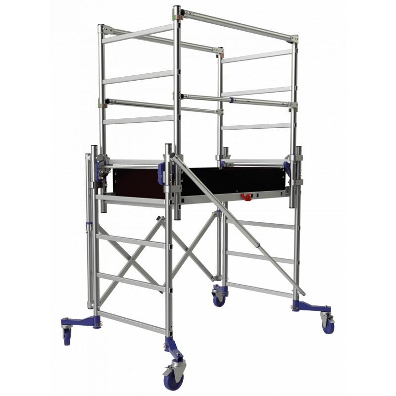 Le RUNNER est un échafaudage roulant aluminium avec une surface utile plancher de 148 x 58 cm. Sa base pliante permet un montage ultra rapide et un encombrement minimum, ce qui facilite son transport. Elle permet aussi l'utilisation du RUNNER en décalage de niveau. Sa structure légère et son dim