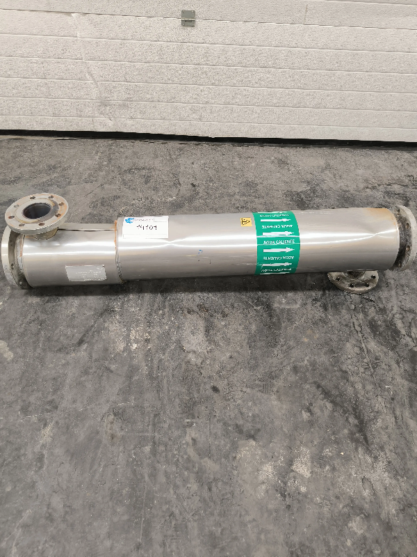 Échangeur de chaleur tubulaire en acier inoxydable avec une surface d'échange de 1,6 m².Connexions : - Latérales : DN100 - Inférieure : DN80 - Supérieure : DN80 - Référence : C14104